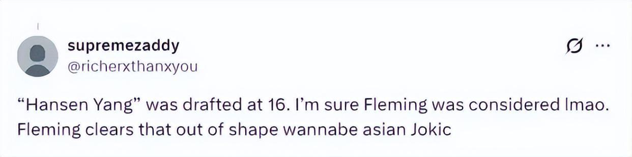 “他是第16顺位被选中的,但有时候看起来更像是一个‘中国约基奇’的标签,而不是实际的能力。”